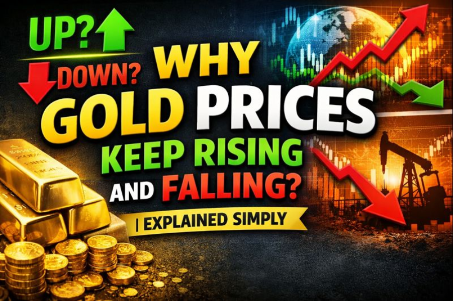 Gold prices keep rising and falling because they depend on global market conditions, the value of the dollar and rupee, and demand and supply. When there is uncertainty in the economy, inflation, or global tension, people prefer gold as a safe investment, which increases its price. Gold prices also rise during wedding and festive seasons due to higher demand. When markets are stable, interest rates increase, or demand decreases, gold prices tend to fall. This is why gold prices never remain constant.