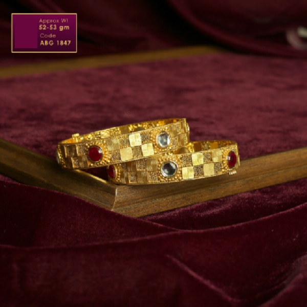 🌺 Antique Bangles – Regal Elegance in Every Curve Celebrate timeless beauty with our Antique Bangles, a tribute to India's rich jewelry heritage. These bangles are handcrafted with exquisite detailing, featuring temple-inspired motifs, floral engravings, and traditional stone settings that evoke royal grandeur. ✨ Key Features: - Antique gold finish with oxidized texture - Embellished with kundan, ruby, and emerald stones - Traditional Indian craftsmanship using jadau and meenakari techniques - Perfect for bridal wear, festive occasions, or heirloom gifting