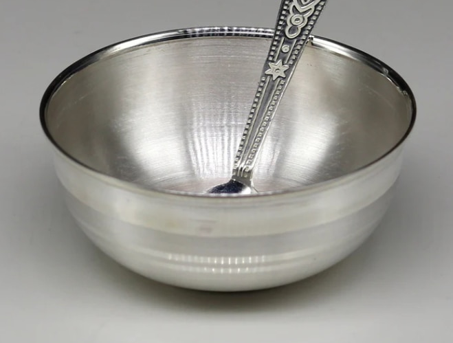 A silver bowl and spoon set is a luxurious and elegant addition to any dining or gifting tradition. Crafted with care, these sets feature a beautifully polished silver bowl paired with a matching spoon, designed to enhance both presentation and utility. The smooth contours and refined finish make them ideal for serving desserts, sweets, dry fruits, or for ceremonial use and baby feeding. Perfect for special occasions, these sets come packaged in attractive gift boxes, making them a thoughtful choice for weddings, anniversaries, housewarming, or festive celebrations. With timeless appeal and lasting quality, a silver bowl and spoon set brings both tradition and sophistication to your table