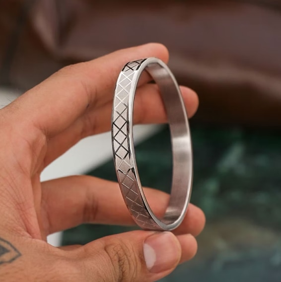 Experience the perfect blend of tradition and style with this exquisite silver kada, designed to reflect timeless elegance and durability. Available in a wide range of designs, from classic plain bands to intricate engravings and modern textures, the silver kada complements every personality and occasion. Whether worn daily or saved for special events, this sturdy and polished piece adds a masculine charm for men or a delicate grace for women. Adjustable and customizable options make it suitable for all wrist sizes, making it an ideal gift or personal accessory. Crafted from high-quality silver with lasting shine Varieties include plain, engraved, oxidized, and designer styles Suitable for everyday wear, ceremonies, and gifting Comfortable fit with smooth edges and adjustable designs